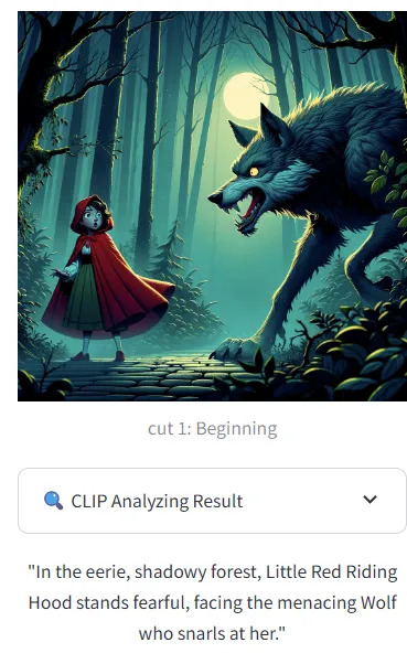첫번째 이미지는 우리 프로젝트에서 “폭풍의 언덕” 텍스트를 기반으로 생성된 웹툰/이미지에 대한 CLIP 분석 결과를 보여준다.